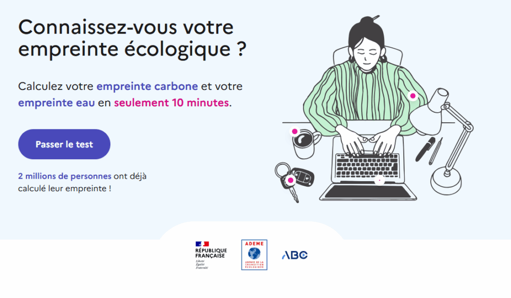 Avez-vous déjà calculé votre empreinte carbone ? Elle correspond à l’ensemble des émissions de carbone provoquées par vos achats dans l’état actuel des produits et services qui vous sont proposés par les entreprises, avant que celles-ci n’optimisent leurs processus de fabrication. L’outil développé par l’ADEME vous permet d’avoir une estimation de cette empreinte.